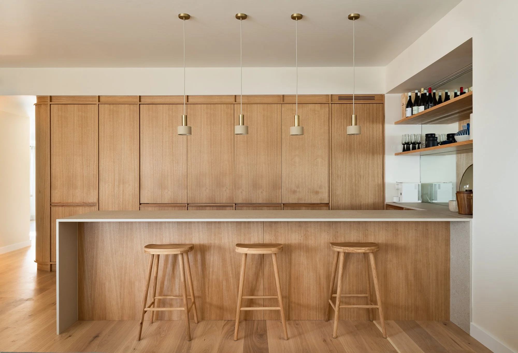 Reconfigurado a partir de um layout desordenado de apenas um quarto para uma habitação espaçosa com dois quartos, este projeto transformou a antiga cozinha numa suite com casa de banho privada e criou uma nova área de convívio, integrando uma cozinha aberta numa espaçosa sala de estar e de jantar.